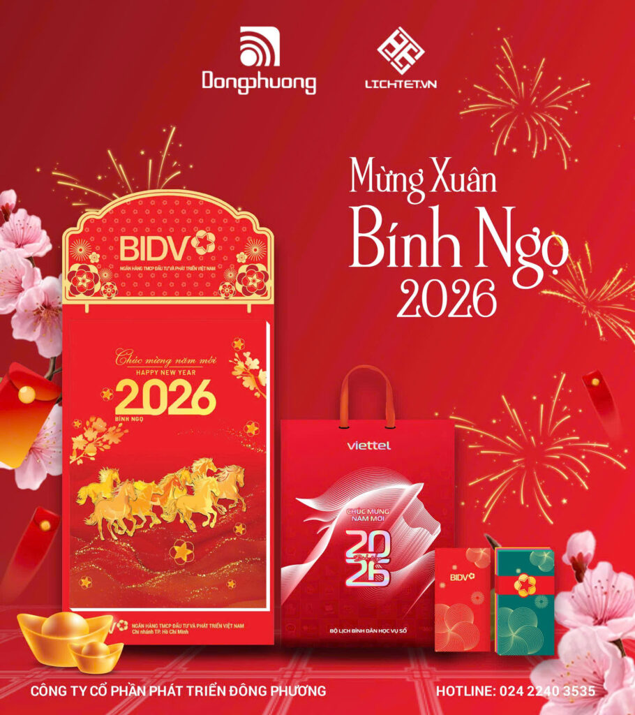 Mỗi một năm lại dần trôi qua, khi những tờ lịch cuối cùng của năm cũ được bóc đi, cũng là lúc mỗi gia đình lại chuẩn bị một cuốn lịch mới. Lịch là sự hiện diện đầu tiên cho không khí Tết, cho năm mới trong các gia đình Việt Nam. Công ty Cổ phần phát triển Đông Phương xin giới thiệu đến Quý khách hàng sản phẩm lịch của năm Bính Ngọ 2026 với các mẫu mã và chủng loại phong phú. Chúng tôi hân hạnh được mời Quý khách hàng vào thăm trang Web: www.lichtet.vn để có thể lựa chọn cho mình những sản phẩm ưng ý.
