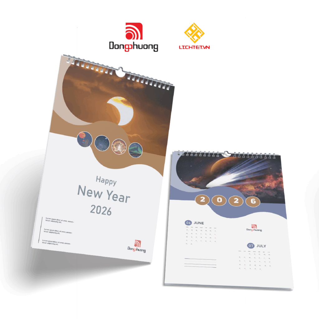 Lịch 5 tờ - 7 tờ - 13 tờ, lò xo gáy hoặc nẹp thiếc